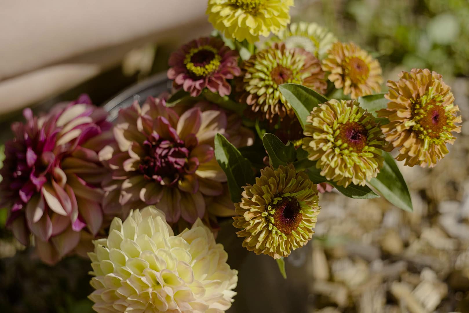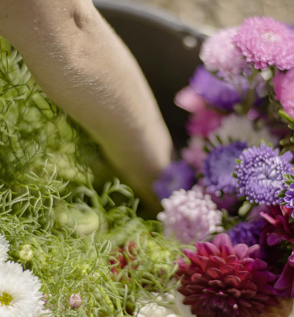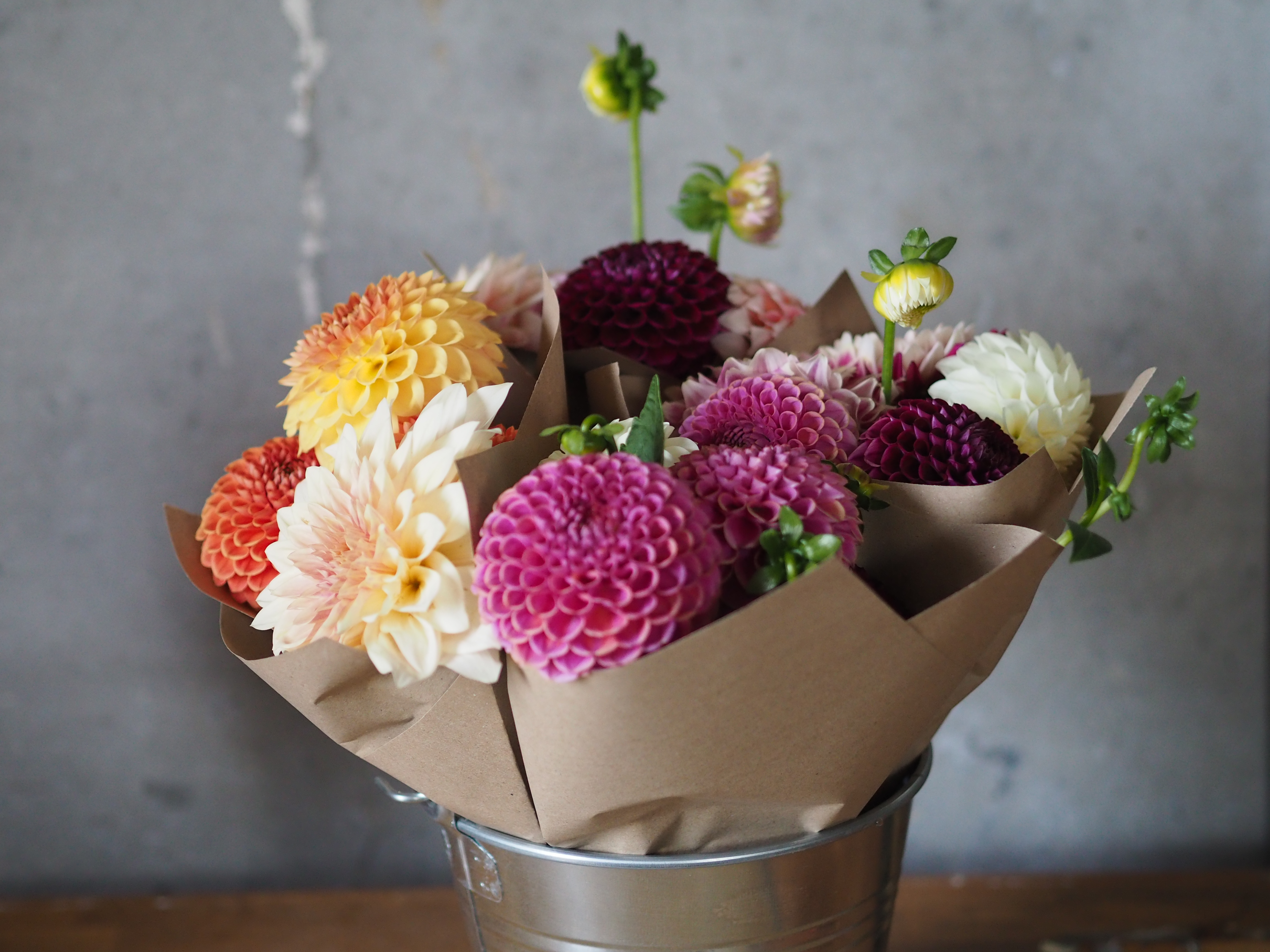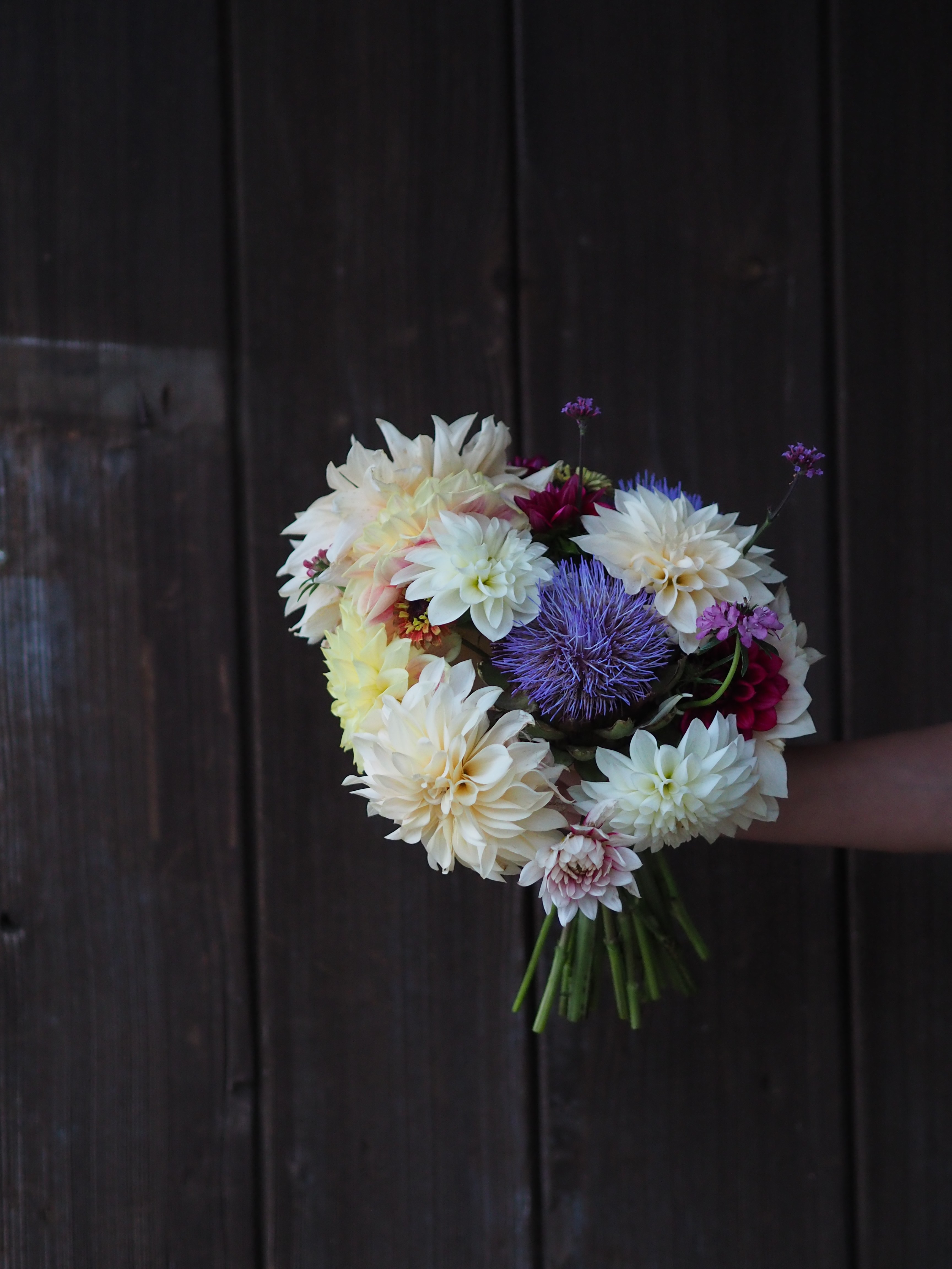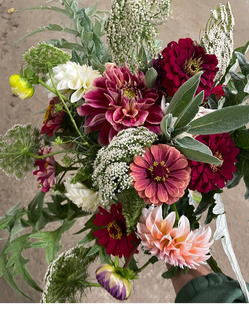 Von April bis Oktober gibt es frische Blumen direkt vom Feld. In abwechslungsreiche Sträuße gebunden finden sich je nach Jahreszeit von zarten Frühlingsblühern wie Kornrade, Rittersporn, Löwenmäulchen und Lupine bis zu den prachtvollen Spätsommer- und Herbstblühern wie Zinnien, Sonnenblumen, Dahlien und Astern alles was das saisonale Blumenherz sich wünschen kann.