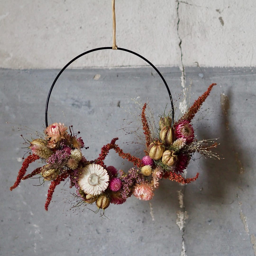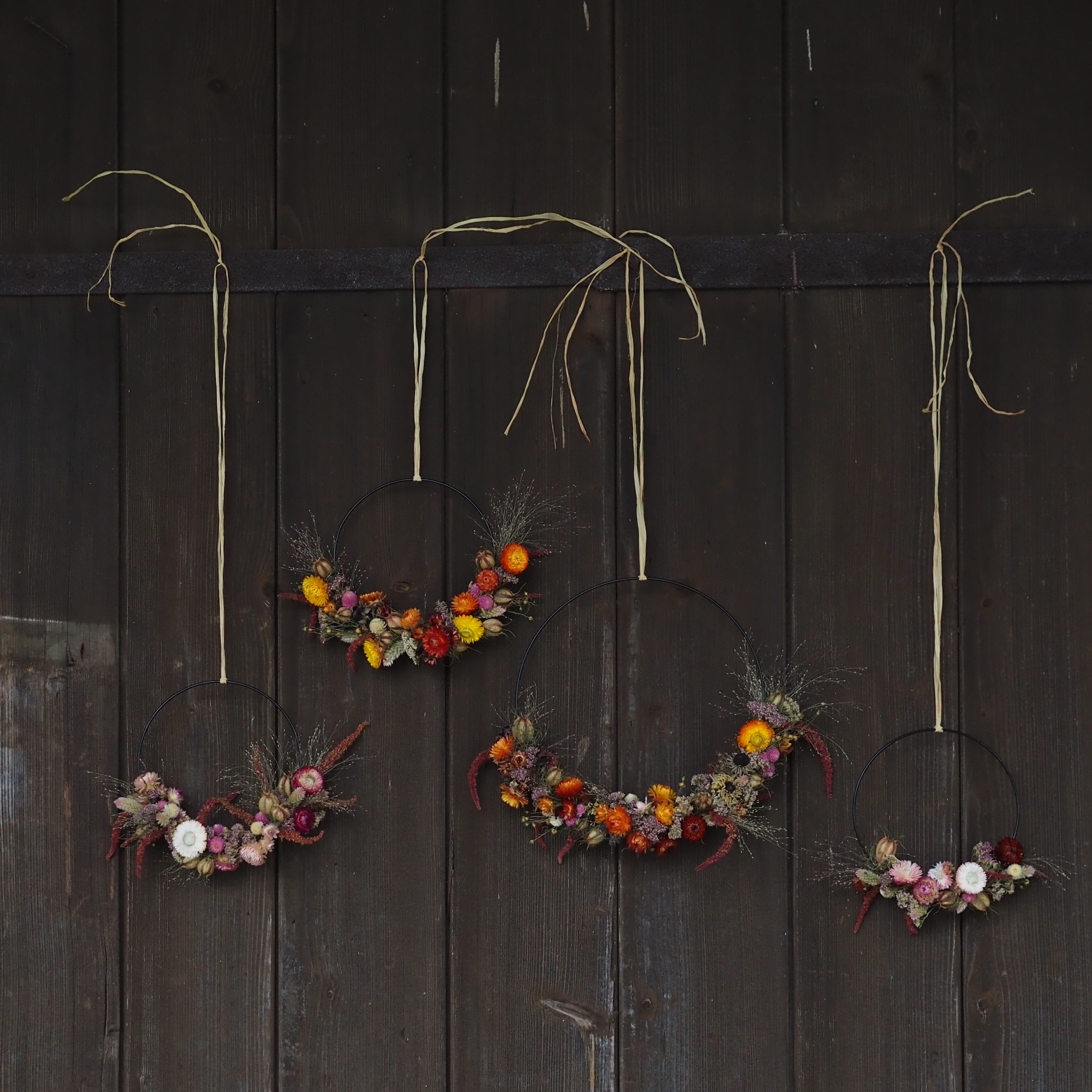 Die Trockenblumen gibt es im Herbst und Winter in Form von Stäußen und Flowerloops zur Abholung auf Bestellung.