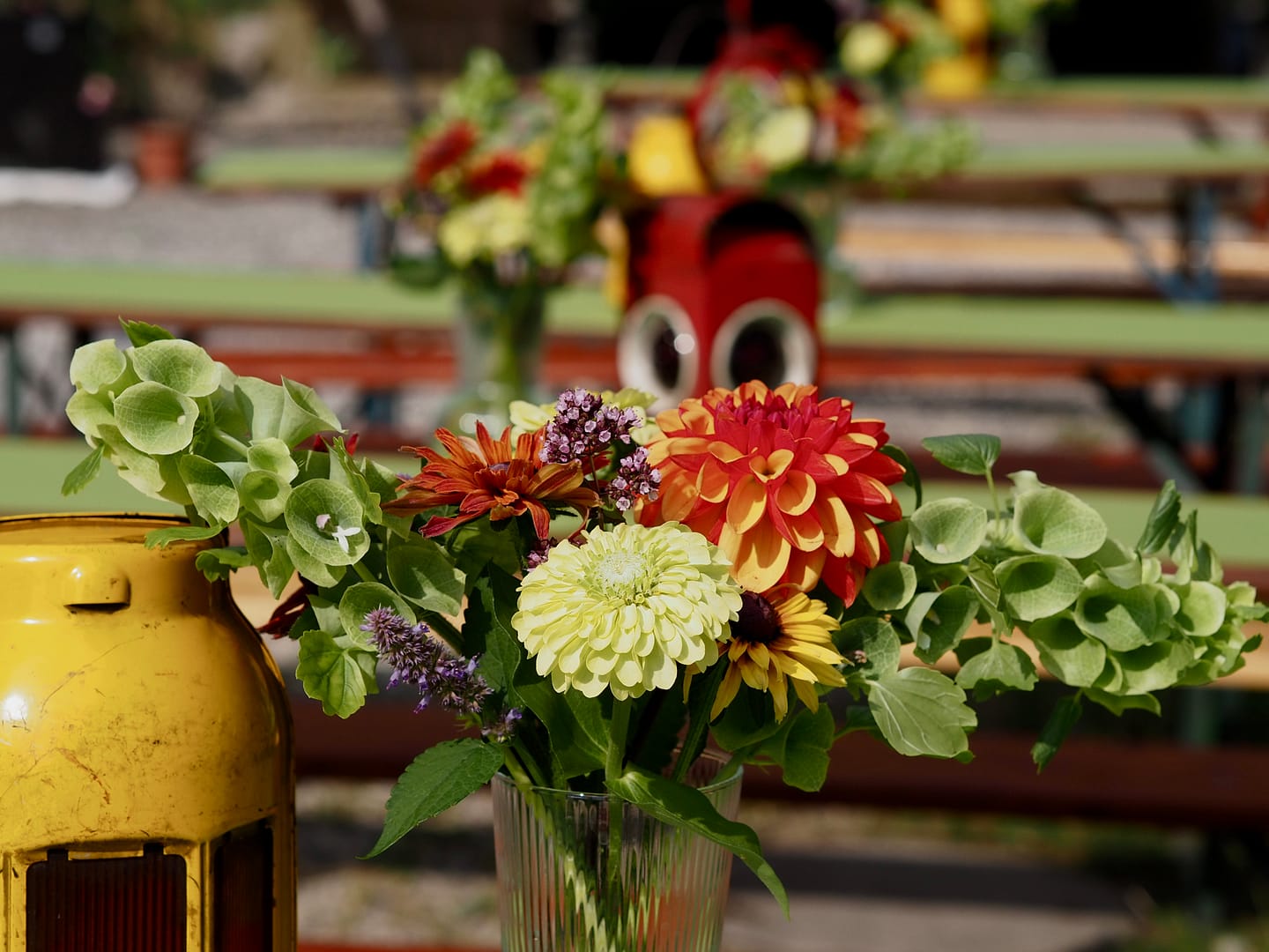 Sei es ein Geburtstag, ein Sommerfest oder natürlich eine Hochzeit: Egal zu welchem Anlass, Blumen machen ein Fest lebendig und bunt. Ob kleine Tischsträuße oder größere Arrangements – Gerne stelle ich auf individuelle Anfrage Blumen inklusive Vasen für dich so zusammen, dass sie den Ton eures Fests unterstreichen und dazu beitragen es mit Leben zu füllen.