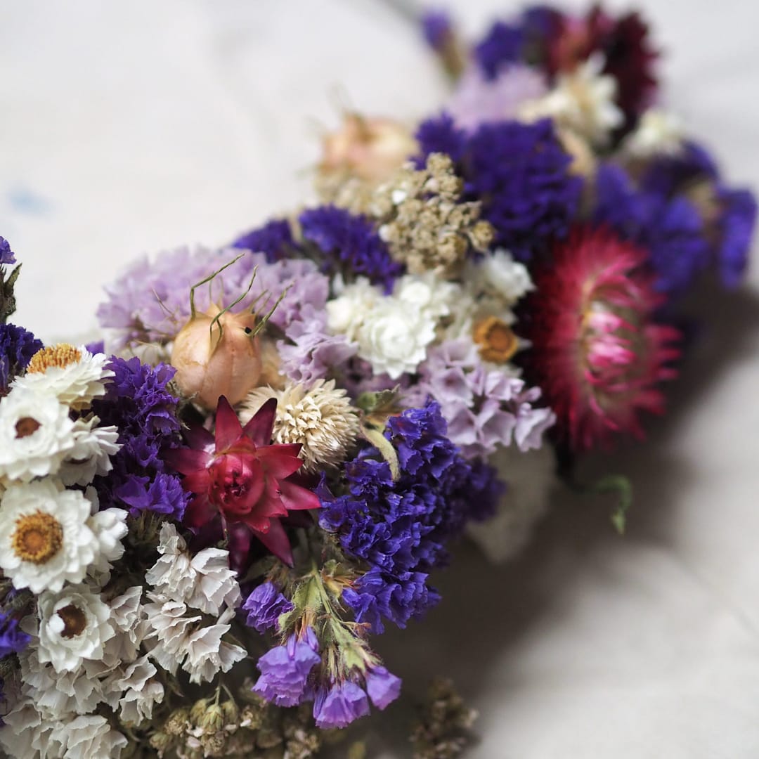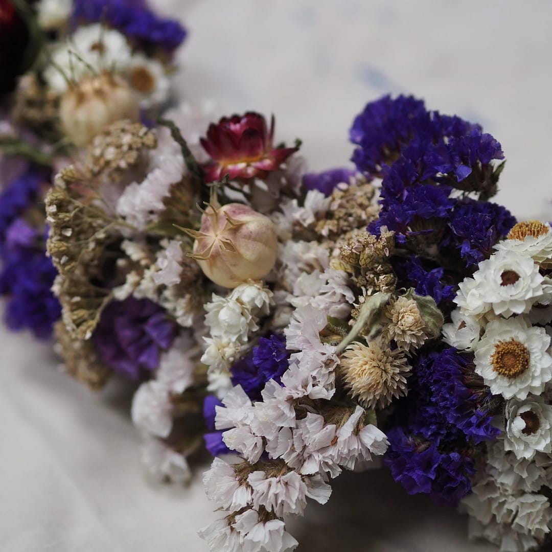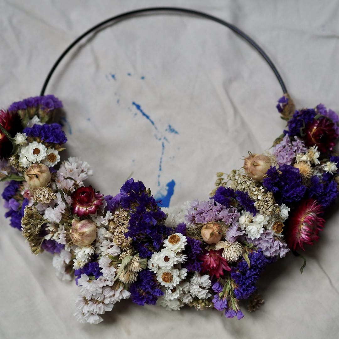 In den Flowerloops findet sich die ganze Vielfalt der im Sommer geernteten Trockenblumen: Von knalligen Blüten bis zu bewegungsreichen zarten Gräsern. Jeder Loop ist von Hand gebunden und in seiner Zusammenstellung und dem Erscheinungsbild einzigartig.